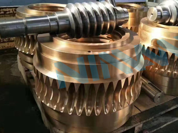蝸輪蝸桿機構(gòu)通常兩軸交錯角為 90°,一般是以蝸桿為主動件。從外形上看,蝸桿類似螺栓,蝸輪則很像斜齒圓柱齒輪。工作時,蝸輪輪齒沿著蝸桿的螺旋面作滑動和滾動。為了改善輪齒的接觸情況,將蝸輪沿齒寬方向做成圓弧形,使之將蝸桿部分包住,這樣蝸桿蝸輪嚙合時是線接觸,而不是點接觸。